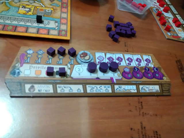 另外是抽袋構築不像牌庫構築,把牌庫用完才洗回去,奧爾良是要把執行過行動的工人丟回袋子,所以有可能會發生一直抽不到想要的(令人想到庸醫跟深谷酒館的差別),當然奧爾良操作性還是比庸醫高,你可以先把工人卡在格子上不執行以確保下一回合抽到的東西~或是這輪抽很爛,工人先擺上去,下一輪抽出來的補上去,也算是有做到兩輪的事情,只是慢一回合,感覺也還行(除非構築的時候沒想好亂買...