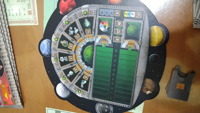第二回合(推助片1o)空間站往下走放5號地圖的原生地,魔力行動拿錢,升實驗室拿1o1q走綠色科技拿1q+收入1q+上回合剩的共4q拿大棟魔力變4科技,再用4魔換2知識把收入科技走滿。